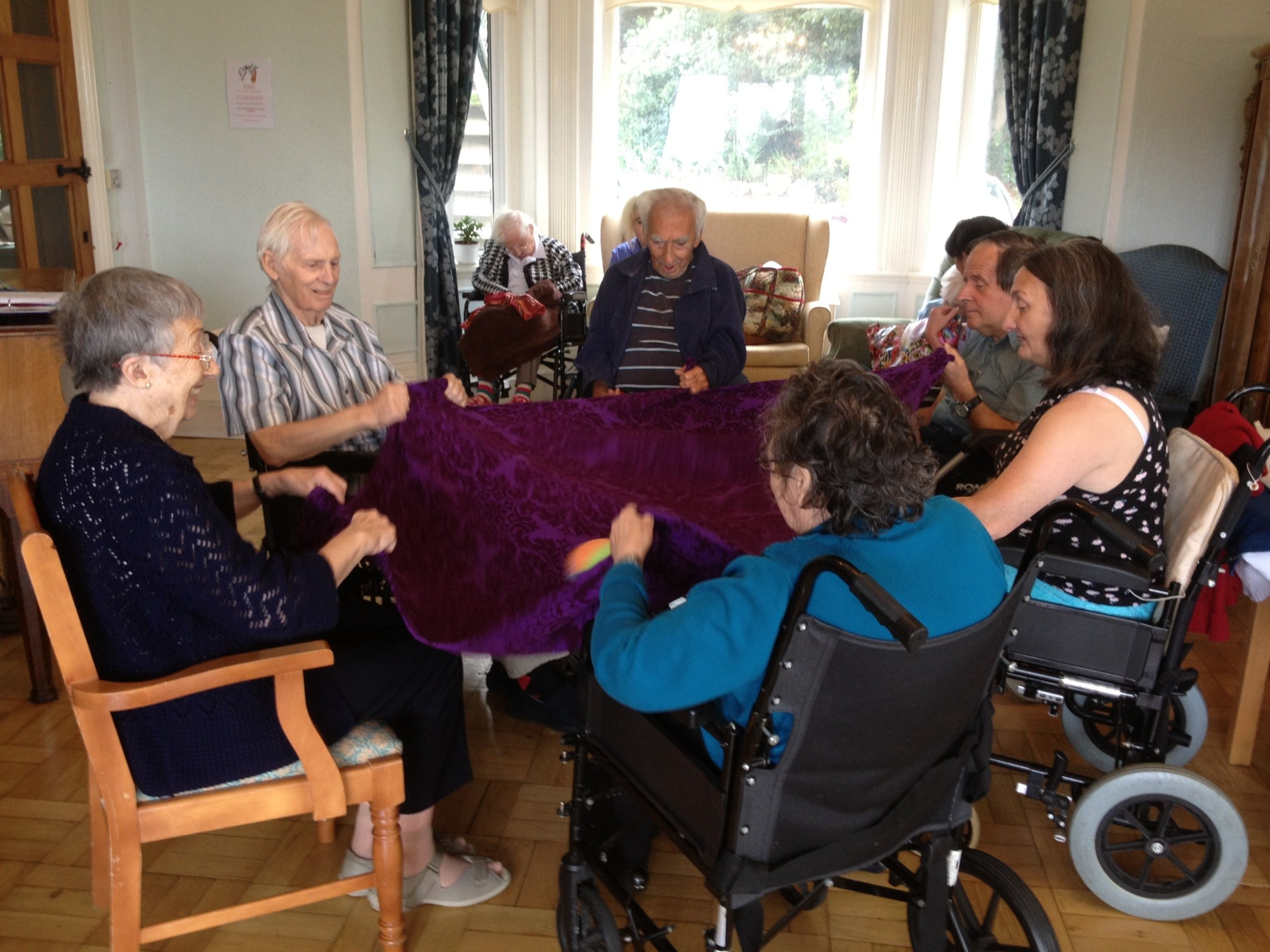 Part of my role in nursing and care homes is teaching mobility and circulatory exercises. This encourages better blood flow, breathing, posture, range of movement and coordination. It involves working with a diversity of clients with disabling injuries or life long conditions. In my perspective, when someone can communicate in any way that there are able to enjoy and experience movement that brings pleasure and a variety of stimulation either sensory or physical, then this is what counts. Breaking up the routine of inactivity and promoting a group socialising opportunity is key to a sense of wellbeing for us all.